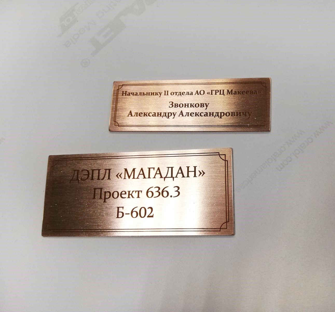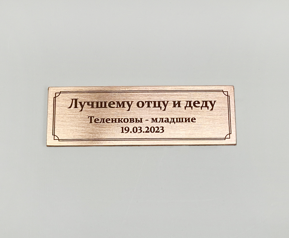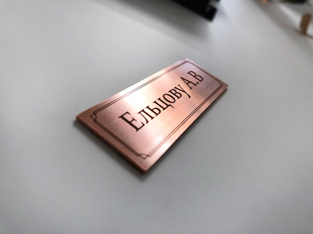 Изготовление и нанесение медных шильдиков на округлые формы.