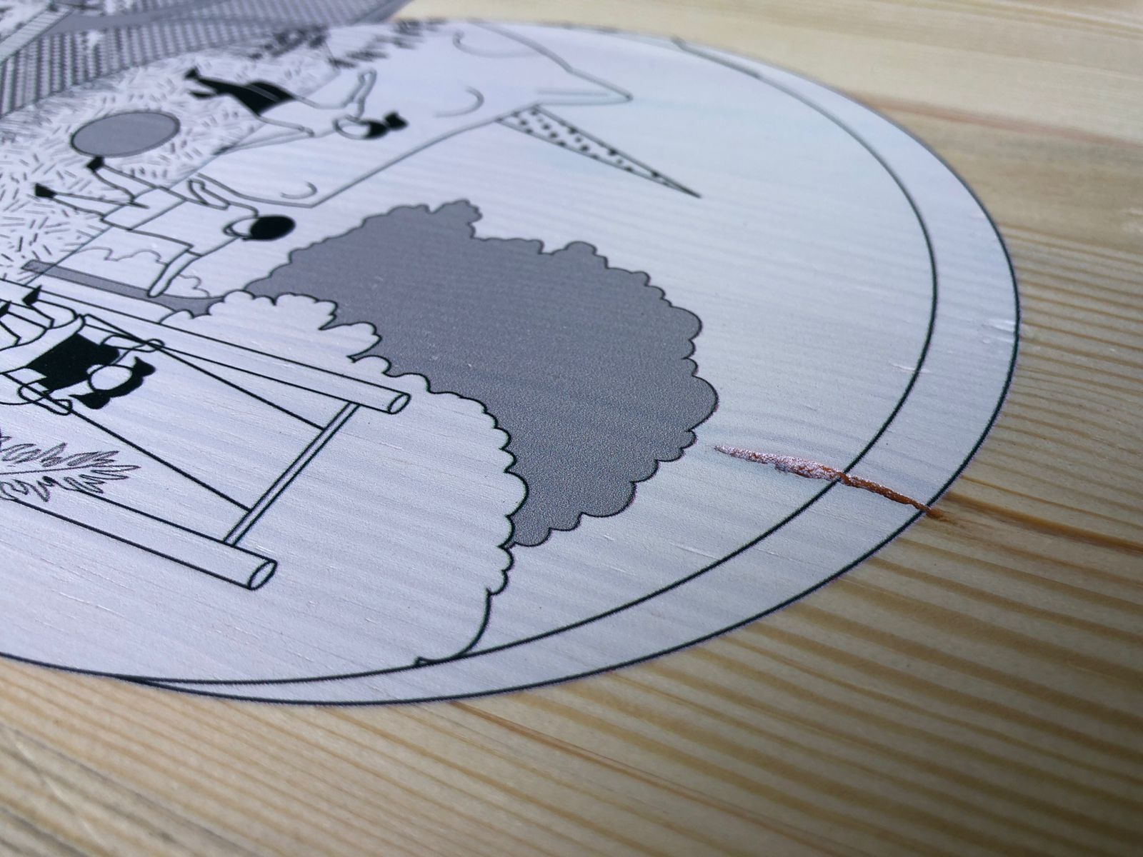 Печать на ровной фанере. Вы можете принести свою фанеру. Размер печатного поля 590*890мм. В нашей компании вы можете не только напечатать на дереве, а также заказать криволинейную резку дерева после печати.