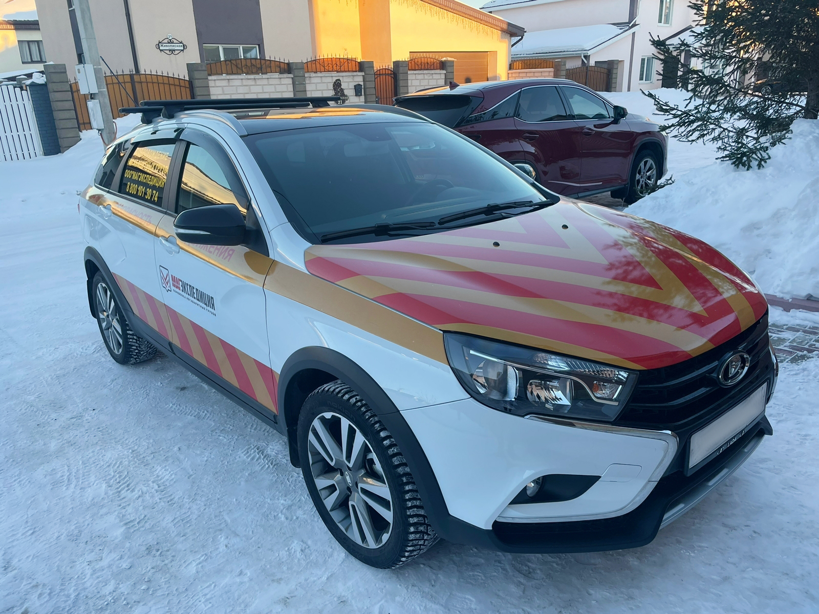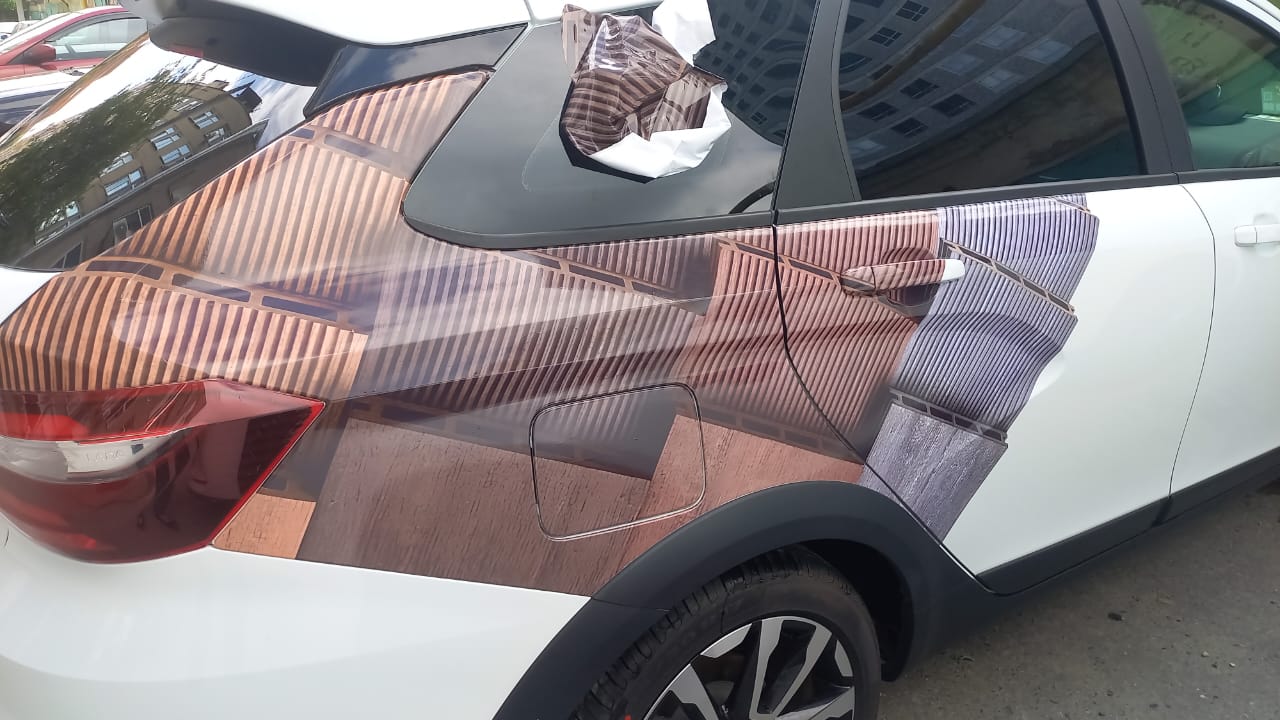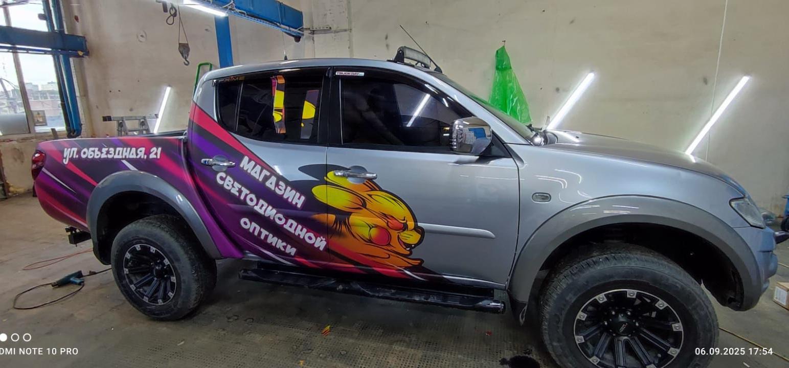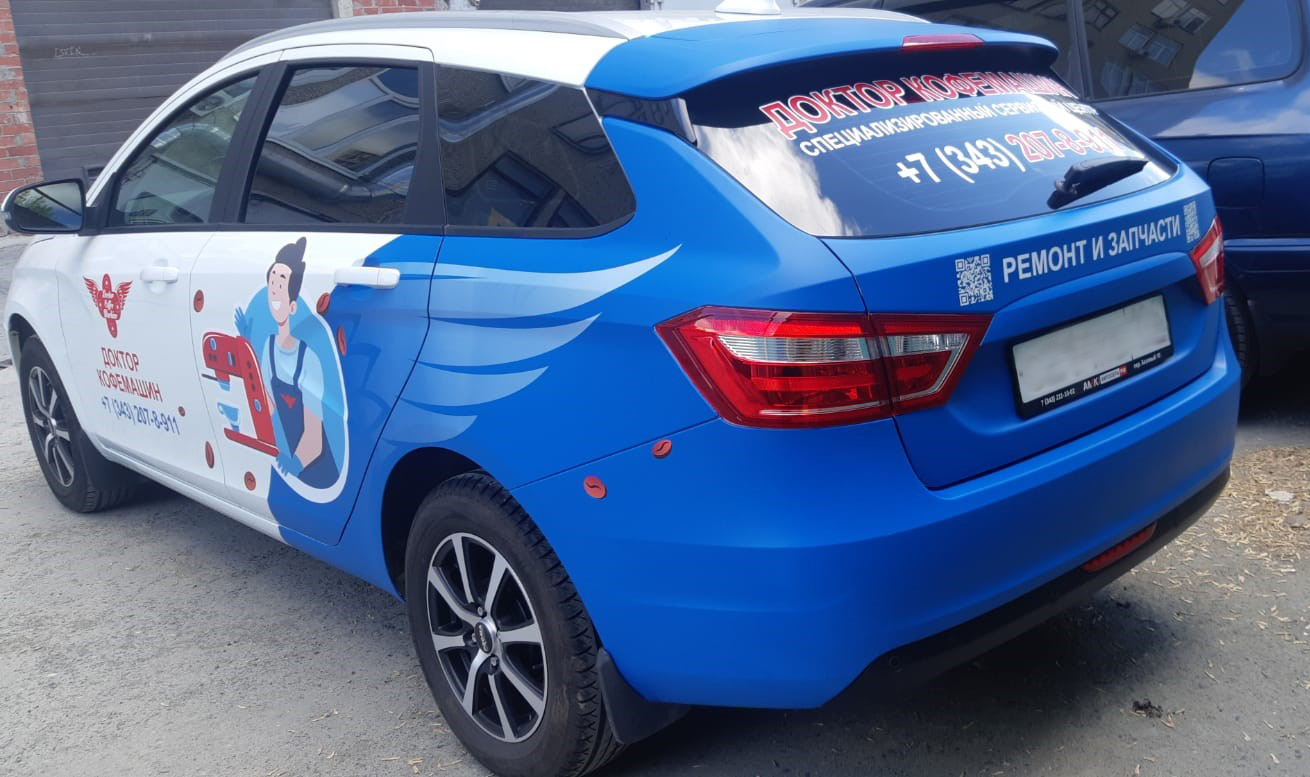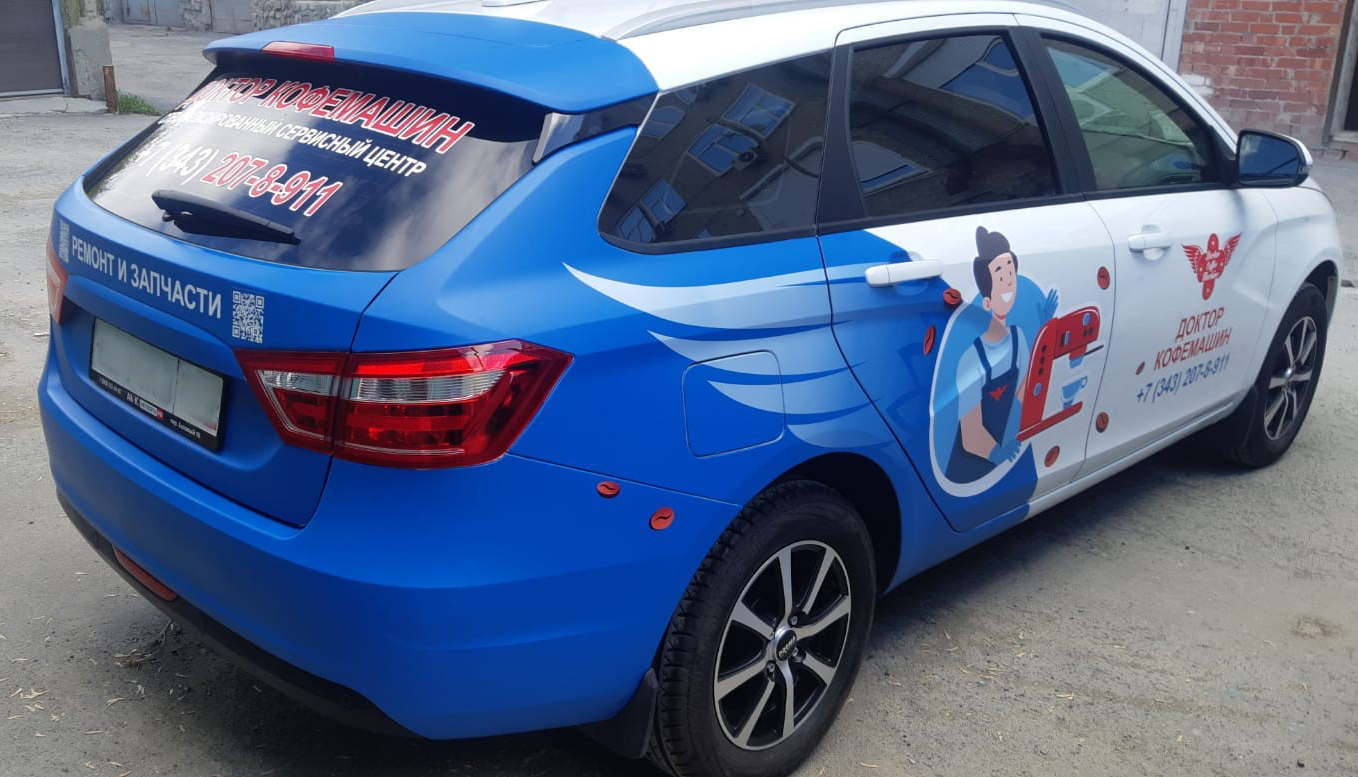 В стоимость брендирования данного автомобиля входило: создание макета, изготовление наклеек, мойка автомобиля и монтаж.